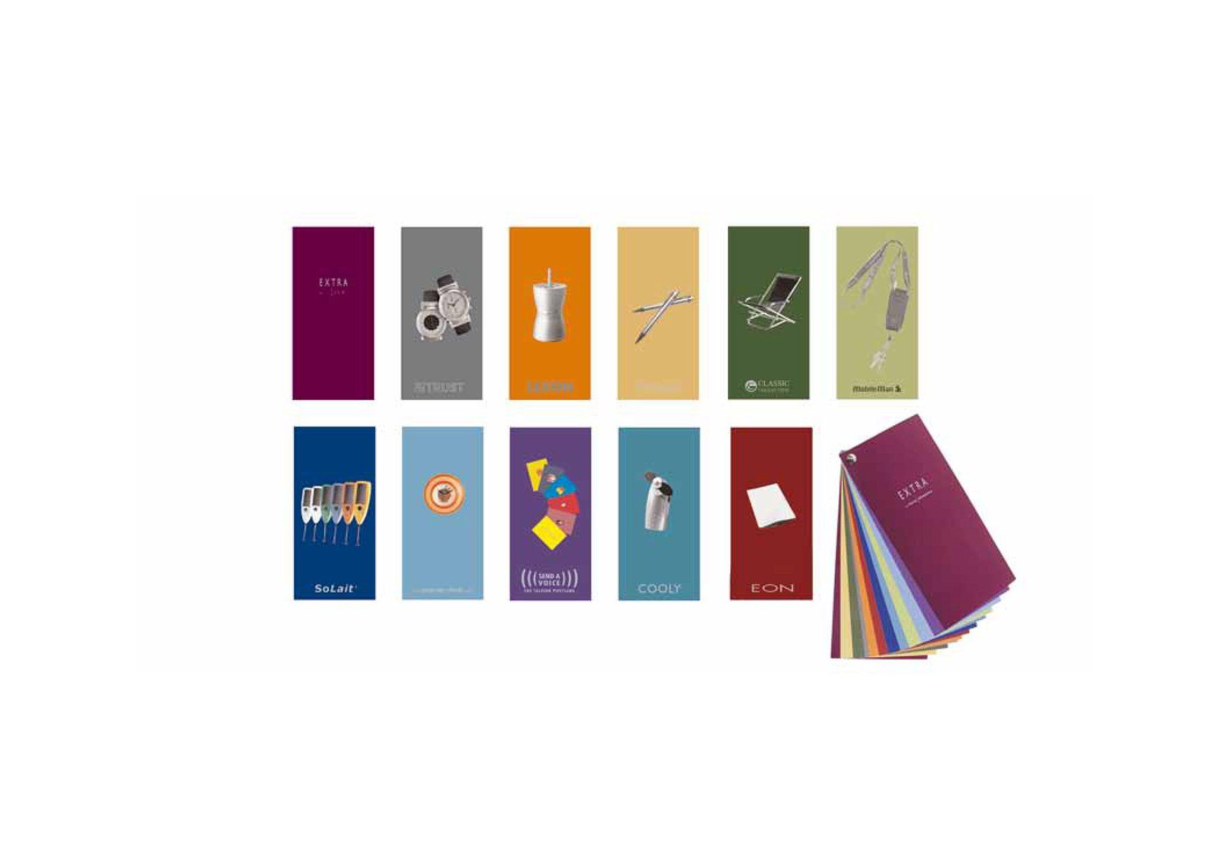 Produktportfolio-Fächer mit den zehn Highlights eines Werbemittel-Anbieters.