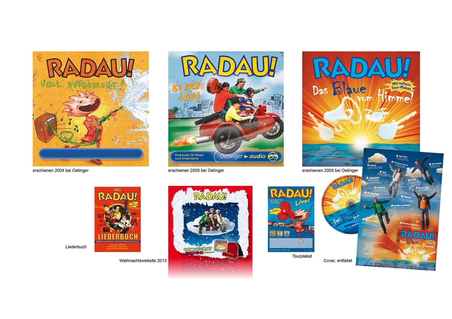 Verschiedene CD-Covers, -Booklets, -Labels und Songbook für die Band RADAU