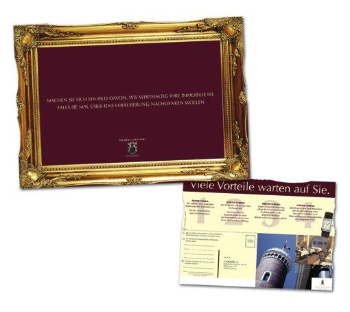 Sog. "Kreativkarte" der Deutschen Post für ein High-Class-Maklerunternehmen.